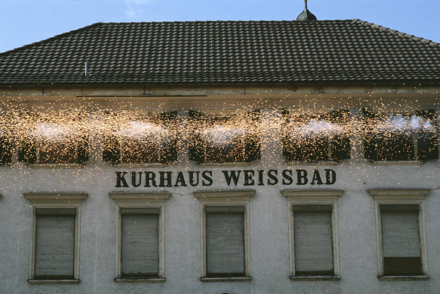 From the very beginning, the work of Roman Signer (*1938, CH) has been concerned with ephemeral events and the release of provoked and existing energies. His materials are natural forces such as water, wind, fire or gravity, which he relates to everyday objects such as chairs, buckets, red kayaks, barrels, remote-controlled flying objects or umbrellas and which repeatedly appear as leitmotifs in the artist's work. He forms grotesquely comical situations into images and unfolds a subtle poetry of humour. Signer documents the precisely planned actions, which are composed of the potential of the situation, the transformation of energy and the trace of the process, in photographic series, on film or later on video. The Super 8 films that Roman Signer shot from the mid-1970s onwards play a special role. They go far beyond a filmic documentation of his actions and become an independent medium in his oeuvre. At the centre of the exhibition are the Super 8 films made in Signer's hometown of Appenzell and the surrounding area. This is Roman Signer's first solo exhibition in Appenzell, CH, which extends over three floors of the Kunsthalle and parts of the former brickworks.